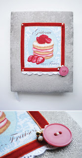 They are covered with fabric or wallpaper, with white pages (or any other color you wish) and the dimensions are slightly different from usual: 29,5 x 10,5cm.