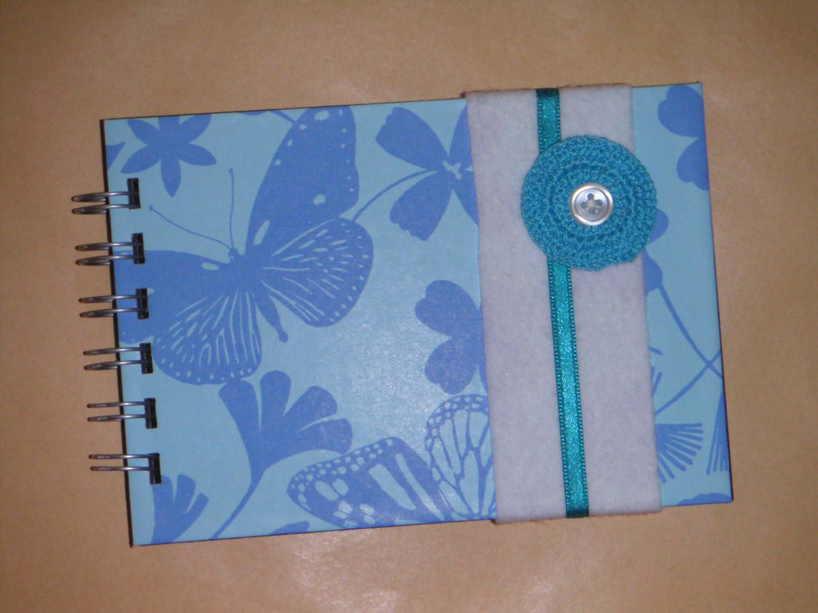 Forrado com papel e encadernado com argolas metálicas, como sempre.